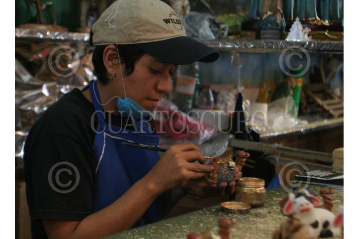MÉXICO D.F.,12DICIEMBRE2009.- Una señora pinta artesanalmente los muñecos que vende para adornar los nacimientos del niño dios en el mercado de Sonora. FOTO: ENRIQUE ORDÓÑEZ/CUARTOSCURO.COM