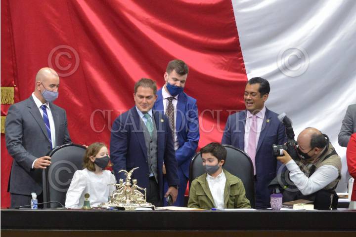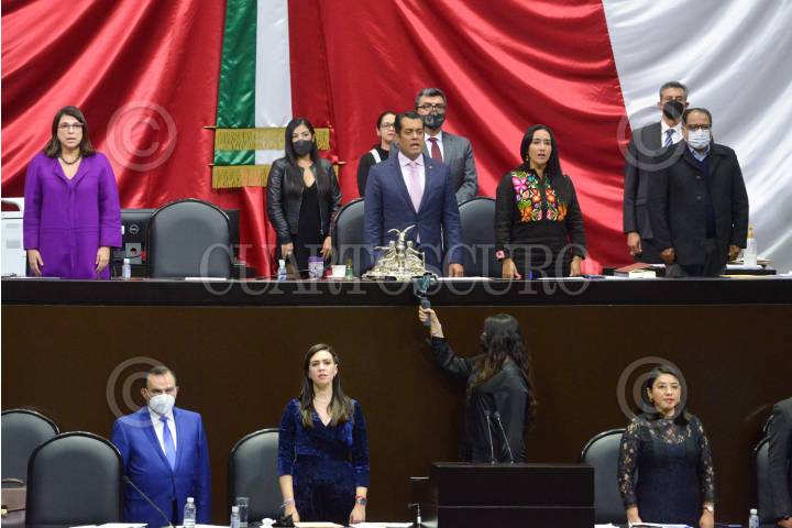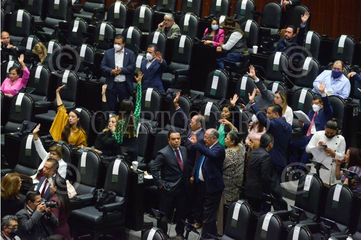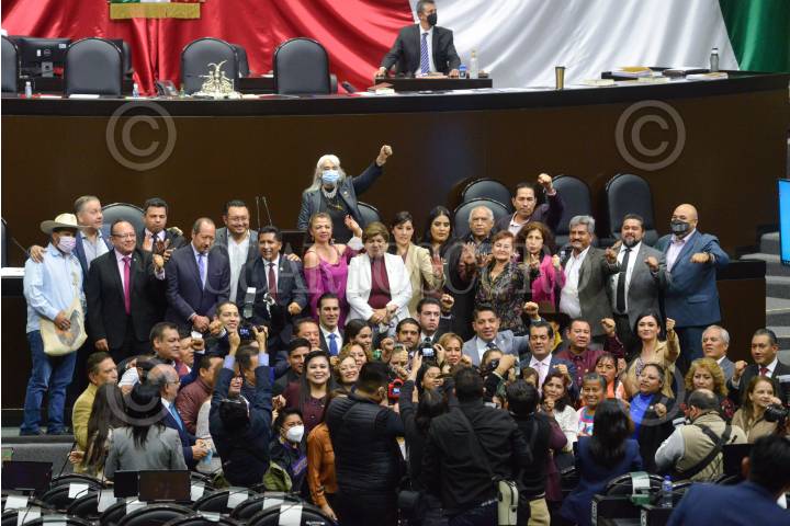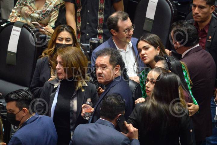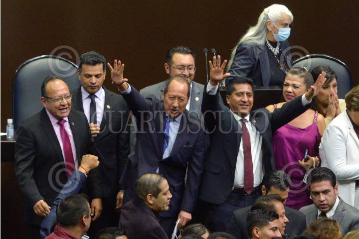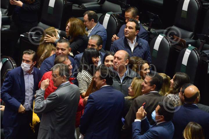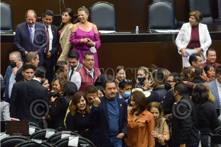 Leonel Godoy, diputado de Morena y sus compañeros de bancada, tras ser decretado el Primer Receso del Primer año de Ejercicio de la LXV Legislatura de la Cámara de Diputados.
