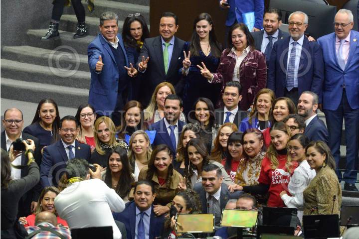 Bancada del PAN se toman una fotografía tras ser decretado el Primer Receso del Primer año de Ejercicio de la LXV Legislatura de la Cámara de Diputados.