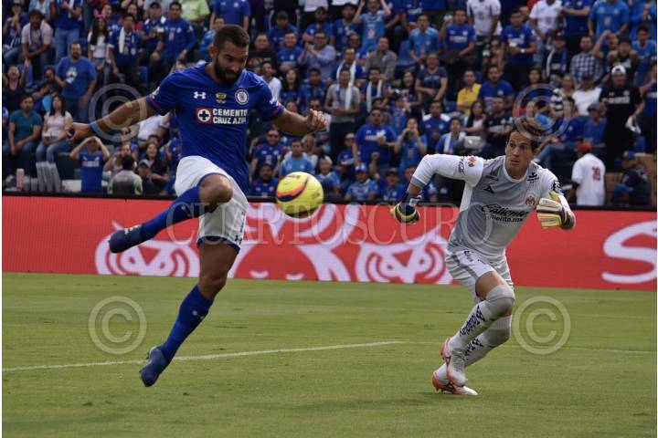CIUDAD DE MÉXICO, 21ABRIL2018.- La máquina celeste del Cruz Azul enfrenta a Monarcas Morelia, como parte de la jornada 16 de la Liga MX. El Cruz Azul disputa su último partido como local en el Estadio Azul. Al medio tiempo la máquina lidera 2-0 el marcador. FOTO: MARIO JASSO /CUARTOSCURO.COM