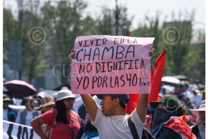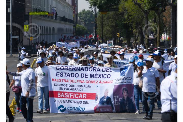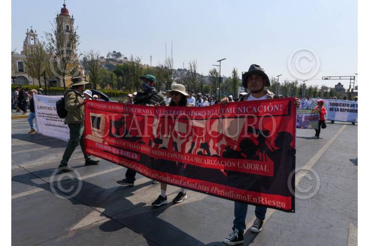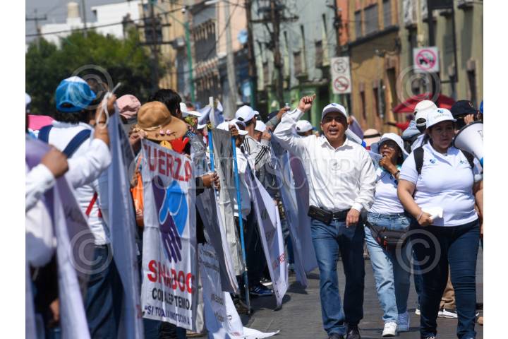 TOLUCA, ESTADO DE MÉXICO, 01MAYO2024.- Integrantes de sindicatos de educación, salud, telefonistas, reporteros, marcharon este 01 de Mayo Día del Trabajo en las calles de Toluca en la lucha por mejoras laborales, aumento de salarios así como la reducción de la jornada laboral a 40 horas semanales, las protestas terminaron frente q Palacio de Gobierno. FOTO: CRISANTA ESPINOSA AGUILAR /CUARTOSCURO.COM
