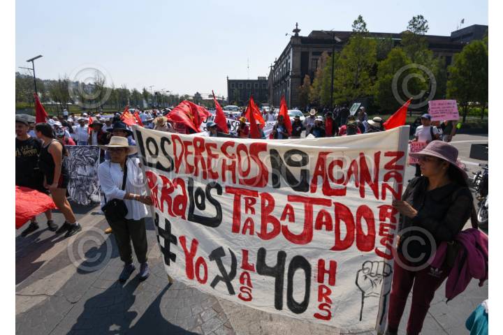 CIUDAD DE MÉXICO, 01MAYO2025.- En el marco Día Internacional del Día del Trabajo, integrantes de diversos sindicatos marcharon para exigir sus derechos en laborales en un protesta que inicio en Avenida Juárez y termino en el Zócalo capitalino. FOTO: GRACIELA LÓPEZ/CUARTOSCURO.COM