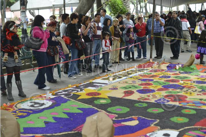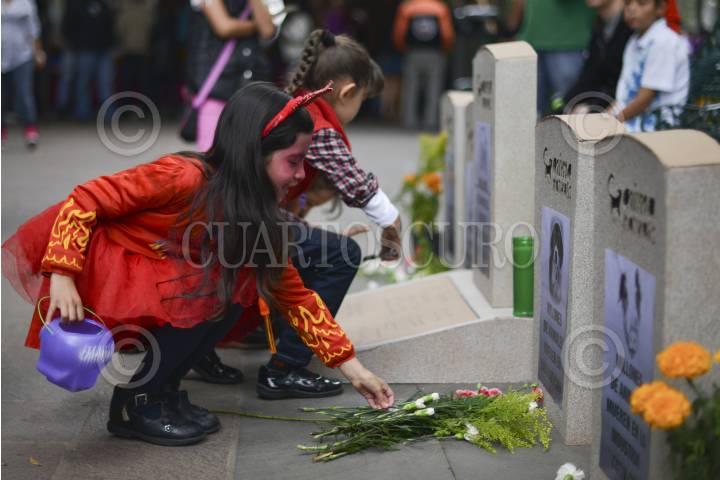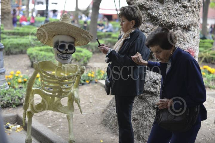 MÉXICO, D.F., 01NOVIEMBRE2013.- En el jardín Hidalgo del centro de Coyoacán cientos de familias salieron a disfrutar de la mañana y de los altares por el día de muertos, algunas personas todavía con sus disfraces de la noche anterior. FOTO: ADOLFO VLADIMIR /CUARTOSCURO.COM