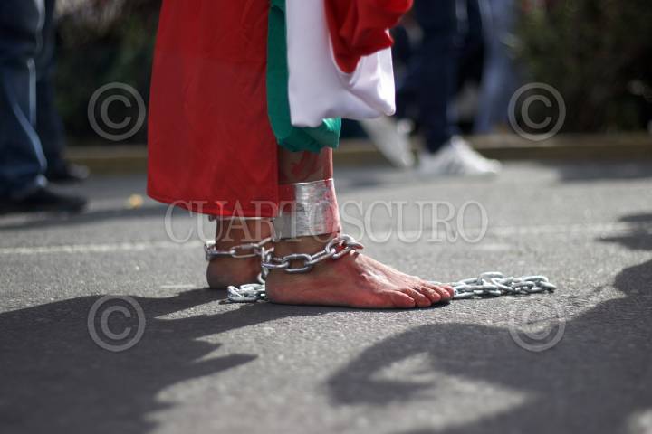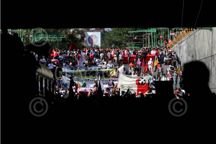 CIUDAD DE MÉXICO, 02OCTUBRE2019.- Con motivo del 51 aniversario de la conmemoración de la masacre del 02 de octubre de 1968, miles de personas marcharon de la Plaza de las Tres Culturas al Zócalo Capitalino. La medida conocida como “cadena de paz” fue puesta en acción por el gobierno capitalino para evitar enfrentamientos y daños por parte de grupos denominados anarquistas. Elementos de la Secretaria de Seguridad Ciudadana intervinieron tras la presencia de estos grupos durante la manifestación. FOTO: GALO CAÑAS /CUARTOSCURO.COM