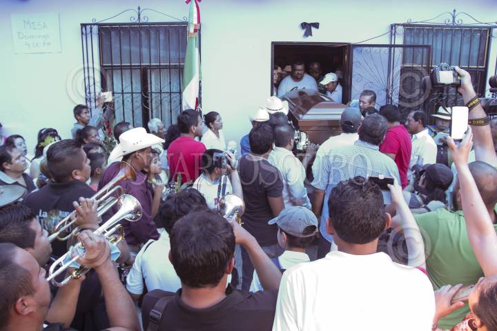 MIACATLÁN, MORELOS., 02FEBRERO2014.- Alrededor de las 15:50, salió el cuerpo de Edgar Tamayo, de la casa de sus padres rodeado de familiares, amigos y el pueblo en general con rumbo a la Parroquia del poblado donde se le rindió una misa de cuerpo presente para después realizar un recorrido por las calles terminando en el Panteón donde será sepultado. FOTO: PATRICIA MORALES /CUARTOSCURO.COM