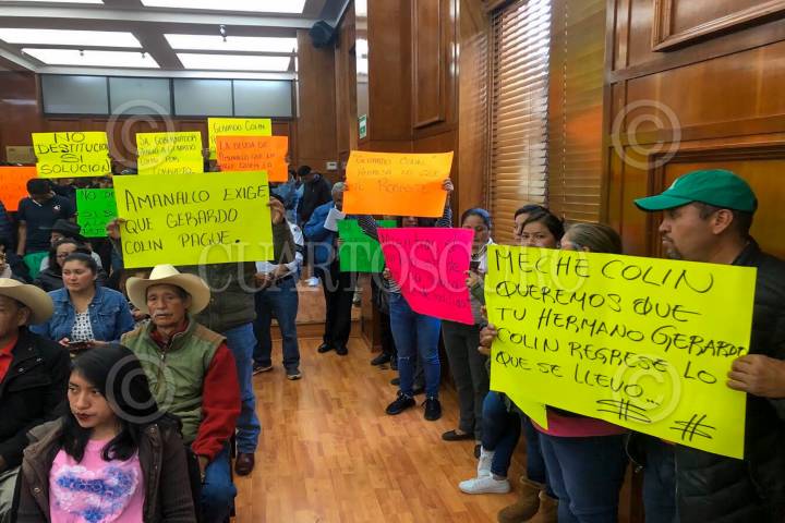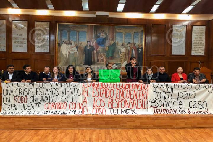 TOLUCA, ESTADO DE MÉXICO, 14NOVIEMBRE2019.- Habitantes de Amanalco y su presidenta municipal Emma Colín Guadarrama, denunciaron en la Cámara de Diputados que un juzgado federal ordenó su destitución al igual que otros integrantes de su cabildo, por incumplimiento a un mandato judicial, al no poder pagar una deuda con Telmex tras perder un juicio, les están cobrando más de 51 millones de pesos. FOTO: CRISANTA ESPINOSA AGUILAR /CUARTOSCURO.COM