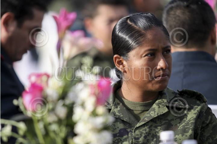 ESCOBEDO, NUEVO LEÓN, 19FEBRERO2013.- En la explanada del XXII de Infantería de la séptima zona militar, Rodrigo Medina, gobernador del estado y autoridades militares y civiles celebraron el día del ejército mexicano con un desayuno para los soldados. El mandatario estatal junto a los comandantes Noé Sandoval Alcazar y Alfredo Flores Gómez inauguraron una exposición fotográfica alusiva al trabajo del ejército a través de los años. FOTO: GABRIELA PÉREZ MONTIEL /CUARTOSCURO.COM