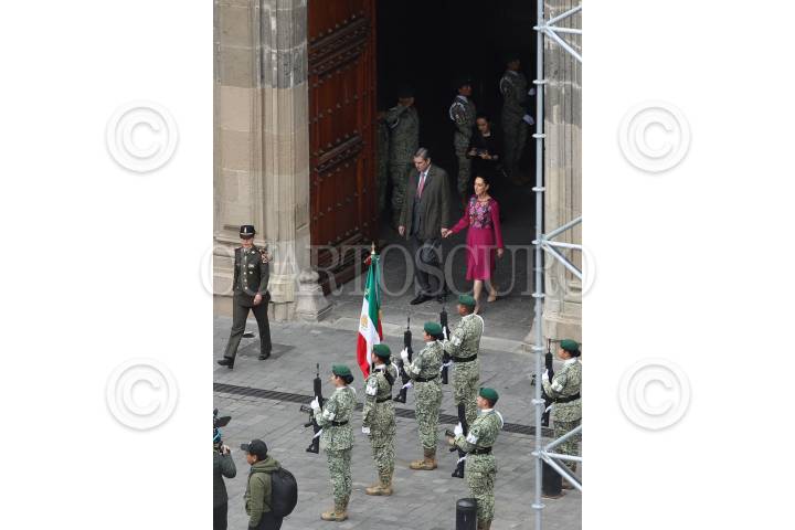 CIUDAD DE MÉXICO, 12ENERO2025.- Claudia Sheinbaum, presidenta de México, sale de Palacio Nacional acompañada por su esposo, Jesús María Tarriba. FOTO: DANIEL AUGUSTO/ CUARTOSCURO.COM