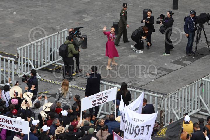 CIUDAD DE MÉXICO, 12ENERO2025.- Claudia Sheinbaum, presidenta de México, se despide de sus simpatizantes al acabar su discurso por los 100 días de su gobierno. FOTO: DANIEL AUGUSTO/ CUARTOSCURO.COM