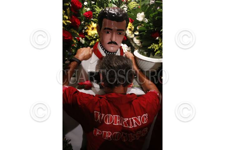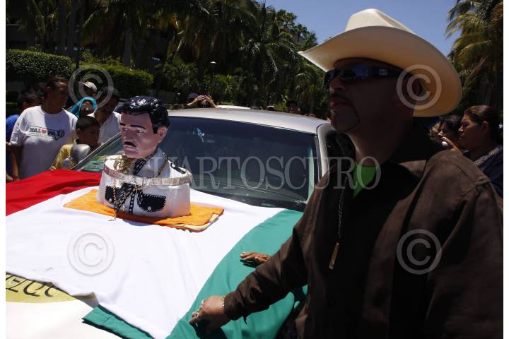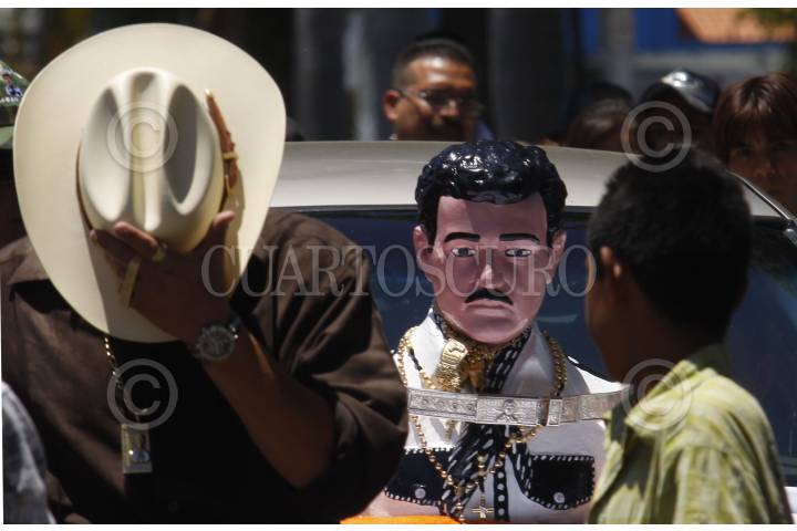 CULIACAN, SINALOA 03MAYO2010.- Devotos a Jesús Malverde acudieron a la capilla ubicada frente al Palacio de Gobierno para celebrar el 101 natalicio del santo sinaloense. FOTO: IVAN STEPHENS/CUARTOSCURO.COM