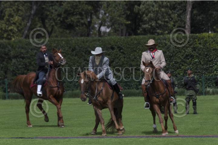 CIUDAD DE MÉXICO, 20NOVIEMBRE2016.- Militares caracterizados de revolucionarios ofrecieron un espectáculo por el 106 aniversario de la Revolución Mexicana en el Campo Marte, festejo encabezado por el Presidente de México, Enrique Peña Nieto. FOTO: MOISÉS PABLO /CUARTOSCURO.COM
