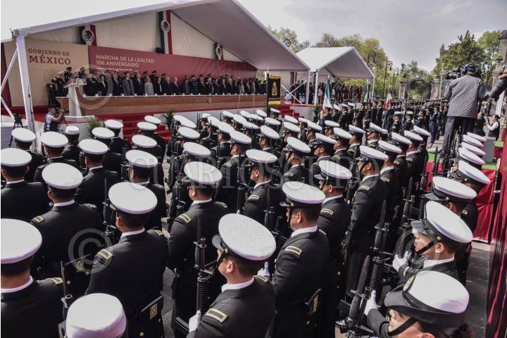 CIUDAD DE MÉXICO, 09FEBRERO2019.- Andrés Manuel Lopez Obrador, presidente de México, encabezó la Marcha de la Lealtad en su 106 Aniversario, llevada a cabo en el patio principal del Castillo de Chapultepec. FOTO: MARIO JASSO /CUARTOSCURO.COM