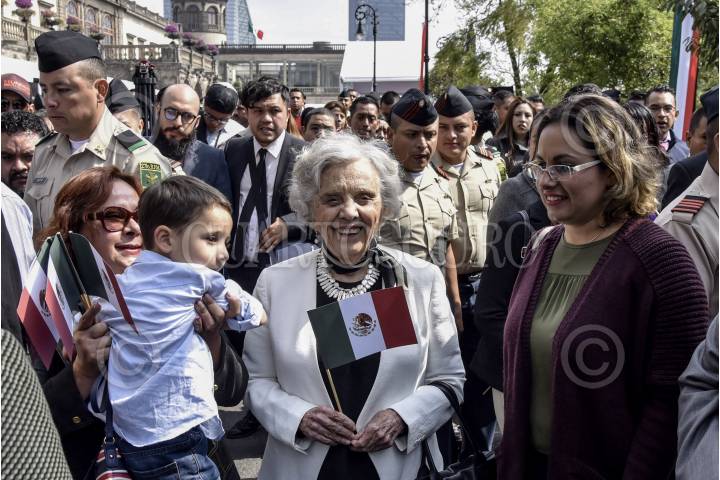 CIUDAD DE MÉXICO, 09FEBRERO2019.- La escritora Elena Poniatowska, durante su estancia en la Marcha de la Lealtad en su 106 Aniversario, encabezada por Andrés Manuel Lopez Obrador, presidente de México, y llevada a cabo en el patio principal del Castillo de Chapultepec. FOTO: MARIO JASSO /CUARTOSCURO.COM