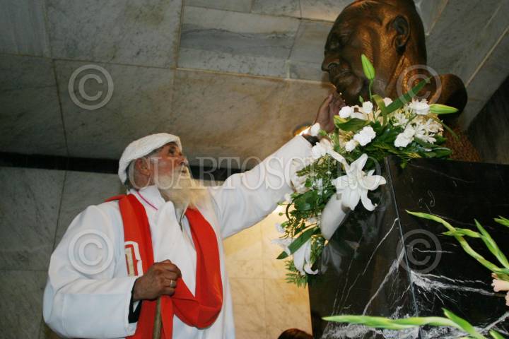 México, D. F. 21 Mayo 2004.- El padre Nacho rinde sus respetos ante la rotonda donde descansan los restos del General Làzaro Cardenas del Río, en su natalicio 109. FOTO: Nelly Salas/CUARTOSCURO.COM
