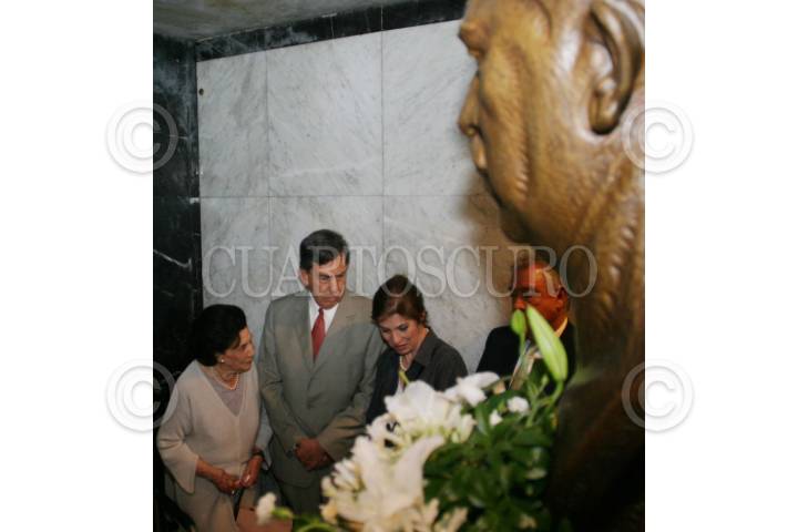Mèxico, D. F. 21 Mayo 2004.- Doña Amalia Solórzano viuda de Cárdenas, el ingeniero Cuauhtemoc Cárdenas y su esposa Celeste Batel monta una guardia en la rotonda donde descansan los restos del General Lázaro Cárdenas del Río, en su natalicio 109. FOTO: Nelly Salas/CUARTOSCURO.COM