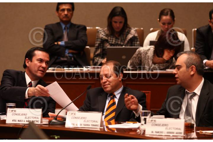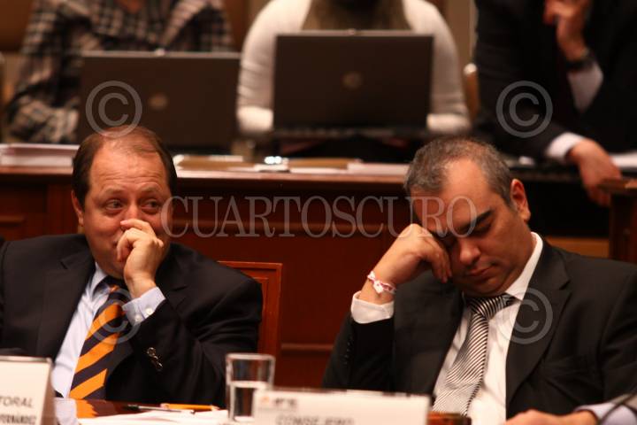 MÉXICO, D.F., 10JULIO2009.-Los consejeros Marco Antonio Baños y Alfredo Figueroa durante la Sesion Extraordinaria del Consejo General del Instituto Federal Electoral FOTO:SÁSHENKA GUTIÉRREZ/CUARTOSCURO.COM