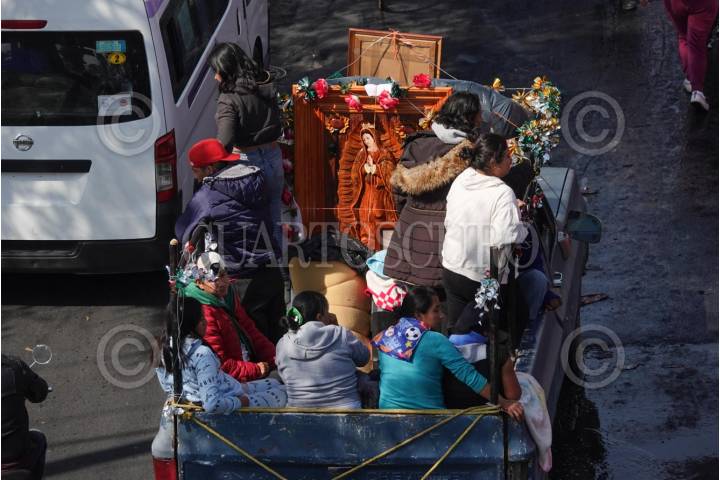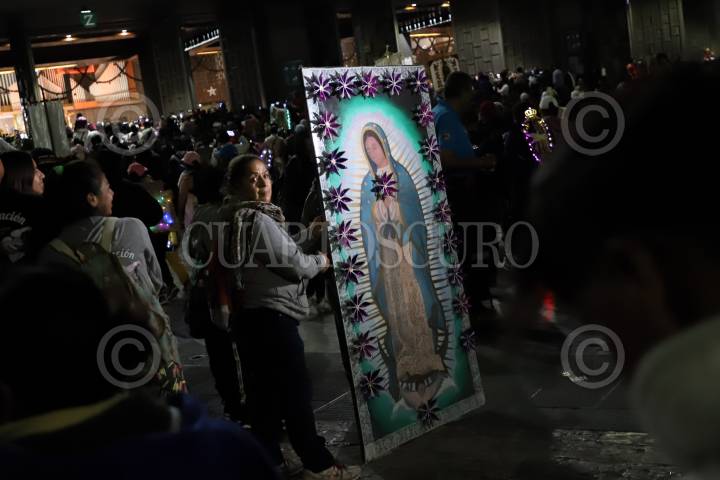 CIUDAD DE MÉXICO, 11DICIEMBRE2024.- Imágenes y figuras de la Virgen de Guadalupe arriban junto con los peregrinos para celebrar un nuevo aniversario de la aparición de la guadalupana. FOTO: DANIEL AUGUSTO/ CUARTOSCURO.COM
