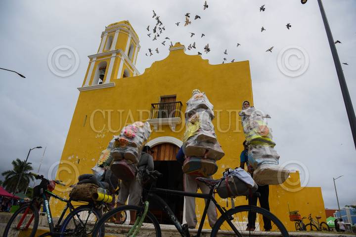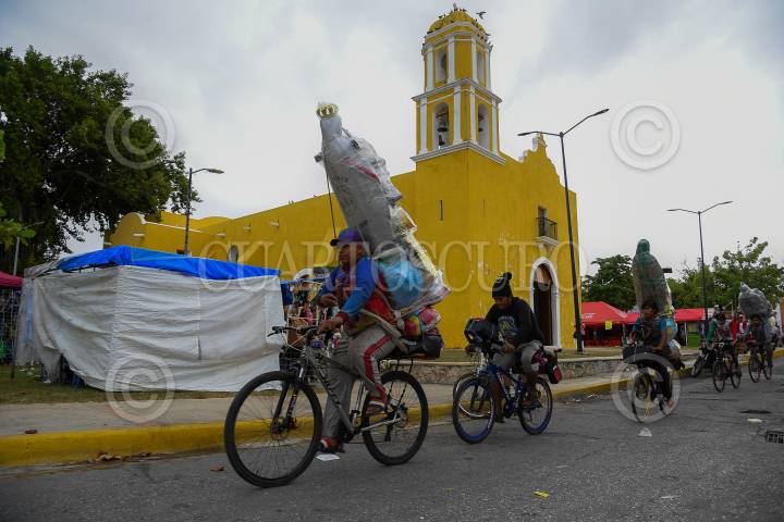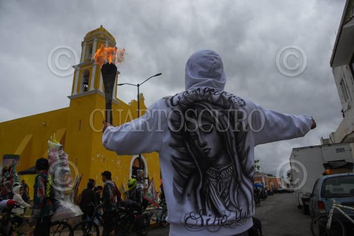 CAMPECHE, CAMPECHE, 11DICIEMBRE2024.- Motivados por su fe y desafiando horas de viaje en bicicleta, peregrinos arriban al santuario de la Virgen de Guadalupe en Campeche. Con cada pedaleo vencen el cansancio, cumpliendo las promesas hechas en agradecimiento por los milagros concedidos por la patrona de México. FOTO: MICHAEL BALAM/CUARTOSCURO.COM