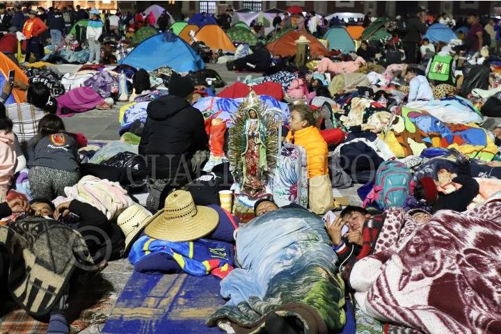 CIUDAD DE MÉXICO, 11DICIEMBRE2024.- Miles de peregrinos pernoctan en la Basílica de Guadalupe luego de caminar decenas de kilómetros para celebrar la aparición de la Virgen de Guadalupe. FOTO: DANIEL AUGUSTO/ CUARTOSCURO.COM
