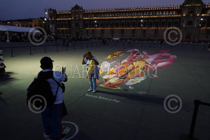 Decenas de capitalinos se fotografiaron con las obras de 12x18 metros de corazones monumentales que adornan el Zócalo para celebrar el mes del Amor y la Amistad.