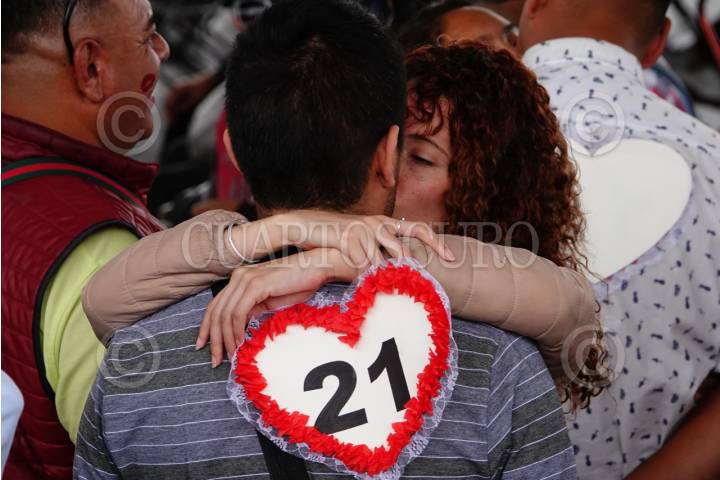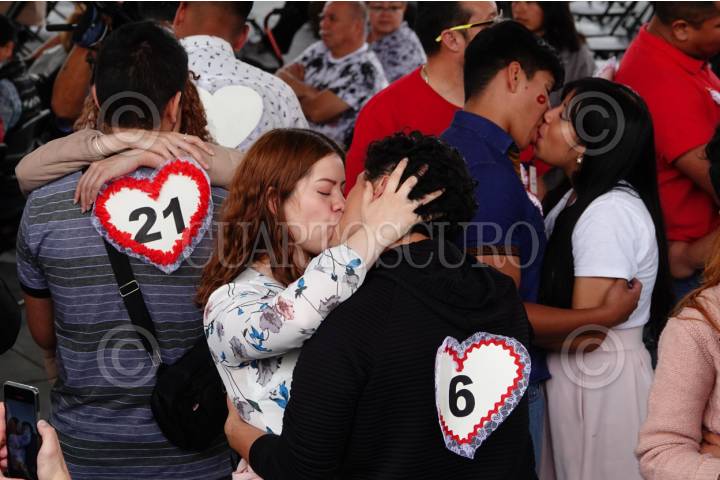 CIUDAD DE MÉXICO, 14FEBRERO2024.- En el marco de las celebraciones del Día del Amor y la Amistad, se llevó acabo el Besotón en la alcaldía Gustavo A. Madero, en donde más de 20 parejas buscaron ganar el proemio de 4 mil pesos al contar con el mayor tiempo besándose. FOTOS: ROGELIO MORALES /CUARTOSCURO.COM