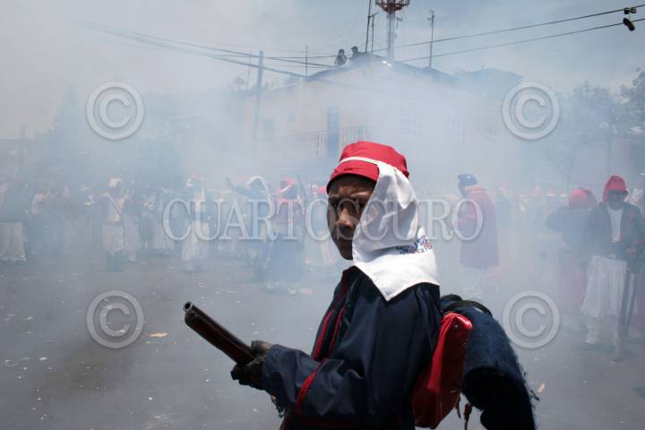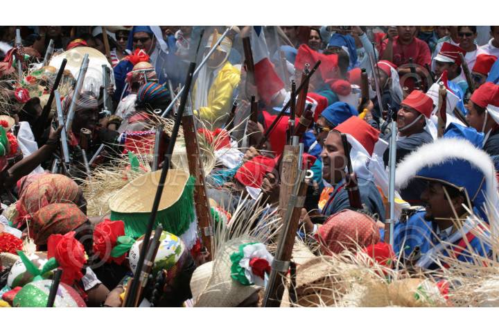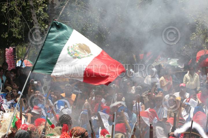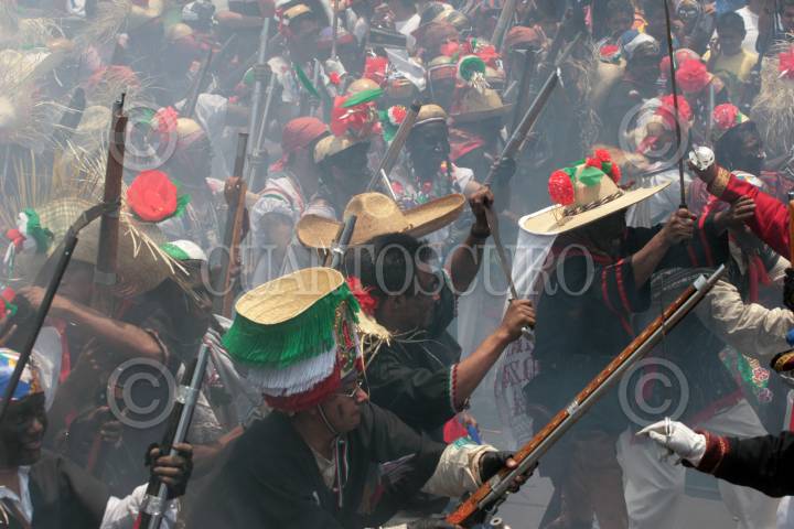 MÉXICO, D.F, 05MAYO2007.- Como ya es tradición en la colonia del Peñon de los Baños se recrea la batalla del 5 de Mayo entre las tropas de México y el ejercito frances hace 145 años. Los vecinos de la colonia se organizan para que unos se caracterizen de los heroicos Zacapoaxtlaz y otros de los pomposos franceses todo esto enmarcado de un sin fin de disparos de salva de escopetas. FOTO: JEFTE ARGUELLO/CUARTOSCURO.COM