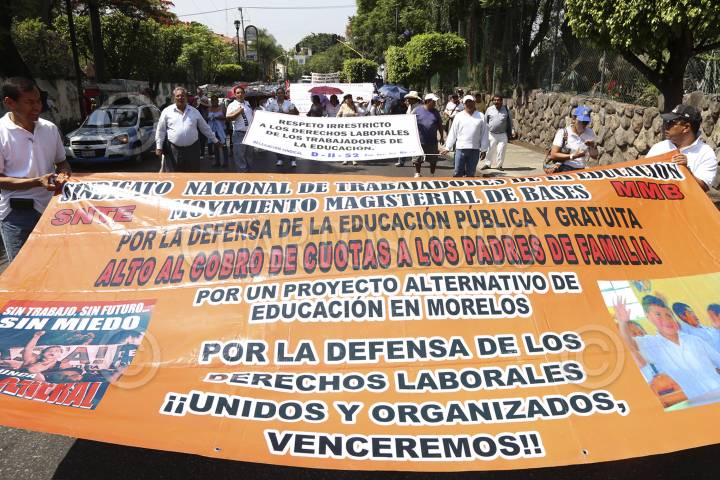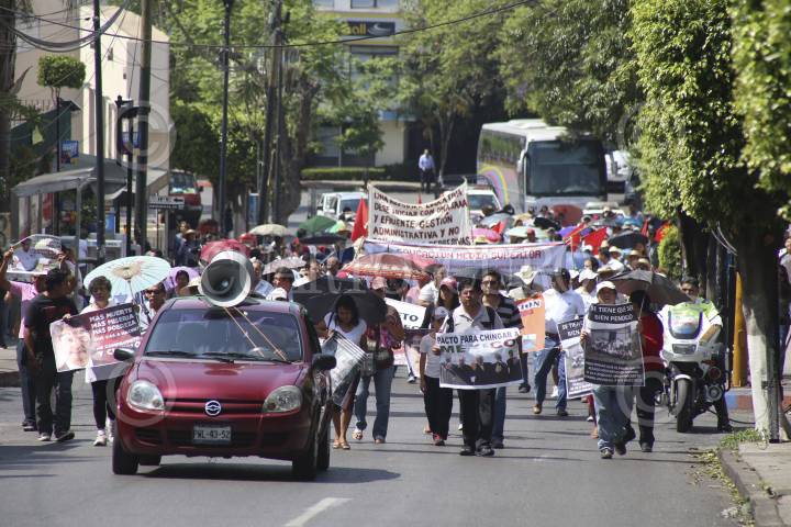 CUERNAVACA, MORELOS, 15MAYO2013.- Maestros marchan por las principales calles de la ciudad para manifestar en contra de la Reforma Educativa. FOTO: ALMA LAFAYET /CUARTOSCURO.COM