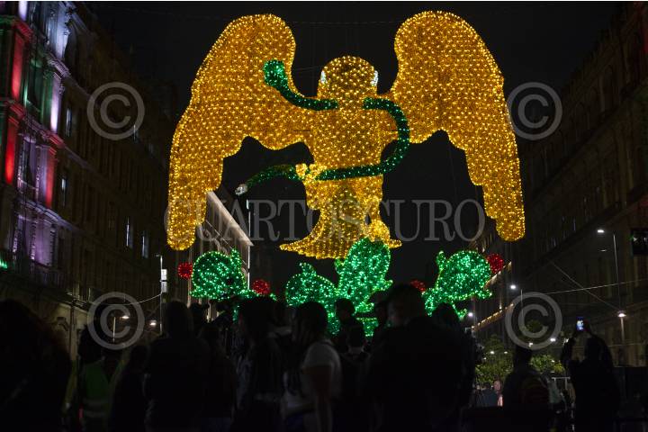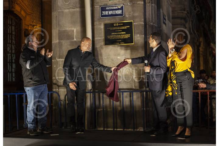 CIUDAD DE MÉXICO, 03SEPTIEMBRE2024.- Martí Batres Guadarrama, jefe de Gobierno de Ciudad encabezo la develación de la placa Conmemorativa del Zócalo Peatonal y el encendido del Alumbrado decorativo con Motivo del 214 Aniversario del Inicio de la Independencia de México. FOTO: ANDREA MURCIA /CUARTOSCURO.COM
