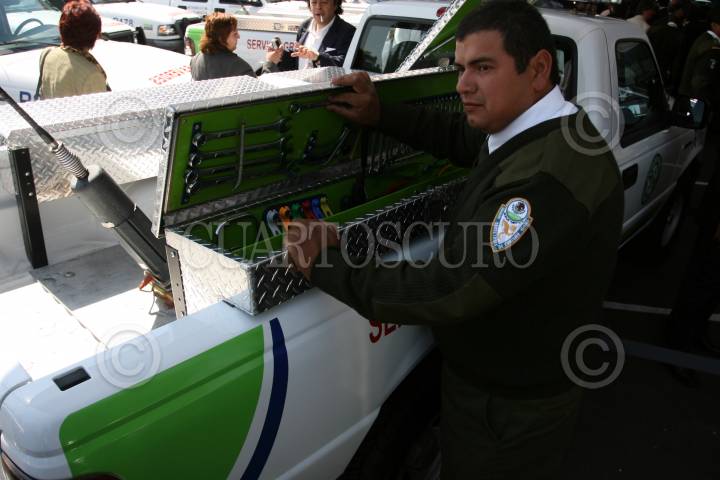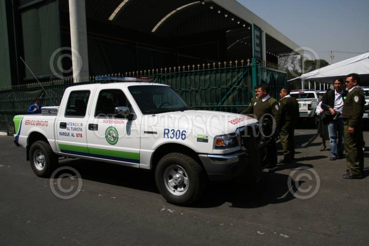 MÉXICO D.F. 04MARZO2008.-El presidente Felipe Claderón, realizó el banderazo de salida a 159 radiopatrullas modernas que fueron entregadas a la coorporación de auxilio vial en las carreteras de los Ángeles Verdes. FOTO: GUILLERMO PEREA/CUARTOSCURO.COM
