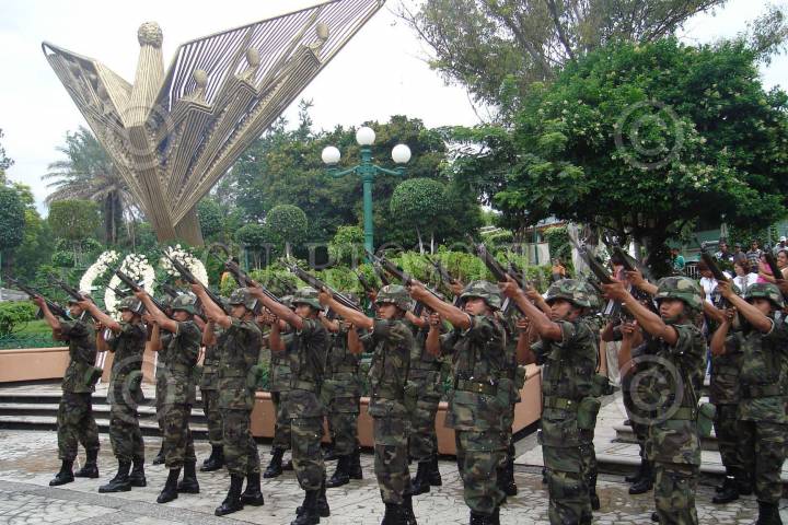 CHILPANCINGO, GUERRERO 13SEPTIEMBRE2006.- Aspecto general de la conmemoracion del 159 aniversario de la Gesta Heroica de Chapultepec, en el monumento a los Niños Heroes en la alameda Granados Maldonado de la ciudad de Chilpancingo, a donde acudieron representantes de los tres niveles de gobierno, asi como elementos del Ejercito Mexicano de la 35a zona militar. FOTO: OSCAR ALVARADO/CUARTOSCURO.COM