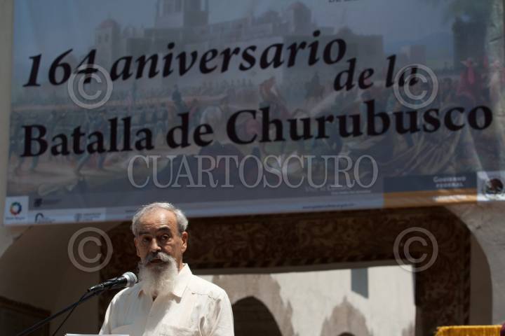 MÉXICO, D.F., 20AGOSTO2011.- El delegado en Coyoacán Rául Flores encabezó la ceremonia cívica para conmemorar el 164 aniversario de la Batalla de Churubusco, que se realizó en el Museo Nacional de las Intervenciones. FOTO: MOISÉS PABLO/CUARTOSCURO.COM