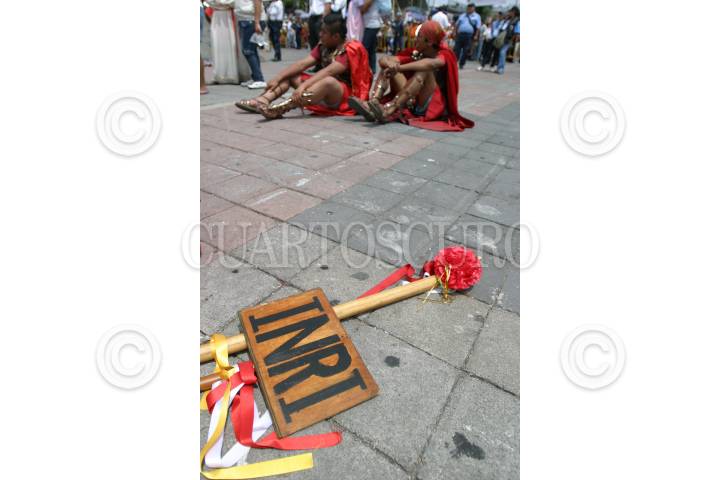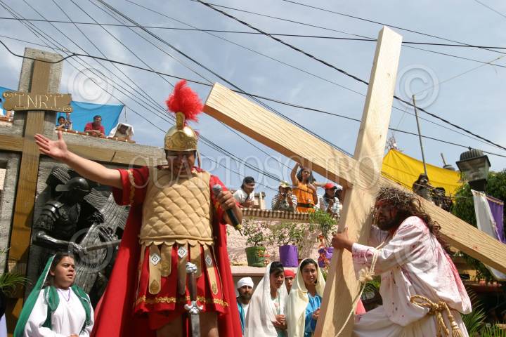 MÉXICO, D.F., 02ABRIL2010.- La representación de la Pasión de Cristo en Iztapalapa se llevó a cabo en su edición 167 en la cual Jesús de Nazareth, personificado por Francisco Gerardo Serrano de 32 años y originario del barrio de Santa Bárbara, recorrió la vía dolorosa rumbo al gólgota ubicado en el Cerro de la Estrella. El nazareno fue crucificado alrededor de las 16:30, una hora más tarde de lo previsto, ante la presencia de Un millón doscientas mil personas según datos estimados por autoridades de la delegación. FOTO: MOISÉS PABLO/CUARTOSCURO.COM