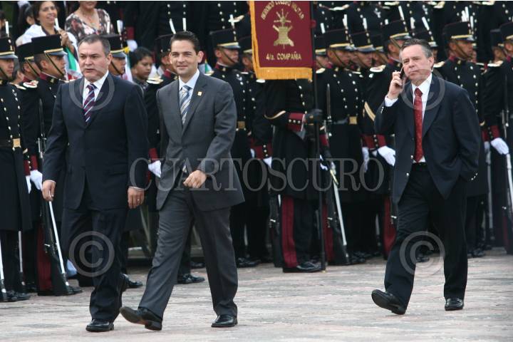 MÉXICO, D.F. 13SEPTIEMBRE2008.- El Secretario de Seguridad Pública, Genaro García Luna, Juan Camilo Mouriño Terrazo Secretario de Gobernación ,el Procurador de la República, Eduardo Medina Mora a su llegada a la celebración de la ceremonia conmemorativa del 16I aniversario de la Gesta Heroica de los Niños Héroes, en el Altar a la Patria, en el Bosque de Chapultepec. FOTO: SÁSHENKA GUTIÉRREZ/CUARTOSCURO.COM