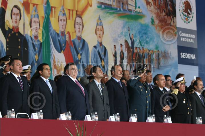 MEXICO, D.F. 13SEPTIEMBRE2008.- Felipe Calderon Presidente de México, entrega espadines a cadetes del Heroico Colegio Militar acompañado por Guillermo Galvan Secretario de la Defensa Nacional, Francisco Saynez Mendoza Secretario de Marina, Gustavo Madero Presidente de la Mesa directiva del Senado de la República durante la celebración de la ceremonia conmemorativa del 16I aniversario de la Gesta Heroica de los Niños Héroes, en el Altar a la Patria, en el Bosque de Chapultepec. FOTO: SÁSHENKA GUTIÉRREZ/CUARTOSCURO.COM