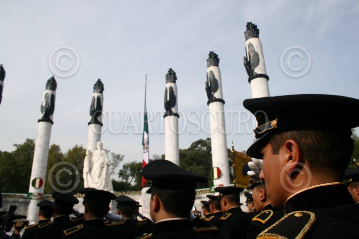 MÉXICO, D.F. 13SEPTIEMBRE2008.- Cadeteso rinden honores durante la ceremonia conmemorativa del 16I aniversario de la Gesta Heroica de los Niños Héroes, en el Altar a la Patria, en el Bosque de Chapultepec. FOTO: SÁSHENKA GUTIÉRREZ/CUARTOSCURO.COM