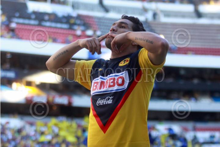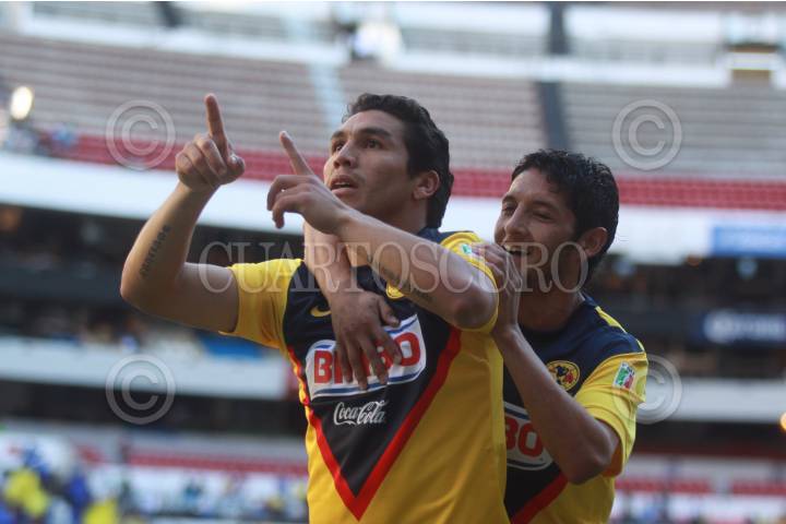 MÉXICO, D.F., 17ENER02010.- Daniel Montenegro celebro su anotación a gol durante el encuentro con el San Luis en el Estadio Azteca. FOTO: SASHENKA GUTIERREZ/CUARTOSCURO.COM