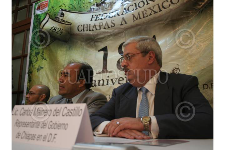 MÉXICO D.F., 28AGOSTO2008.- El representante del Gobierno de Chiapas en el D.F., Carlos Mainero del Castillo, durante la conferencia que se celebró para dar detalles del 184 aniversario de la Federacion de Chiapas. FOTO: ENRIQUE ORDÓÑEZ/CUARTOSCURO.COM