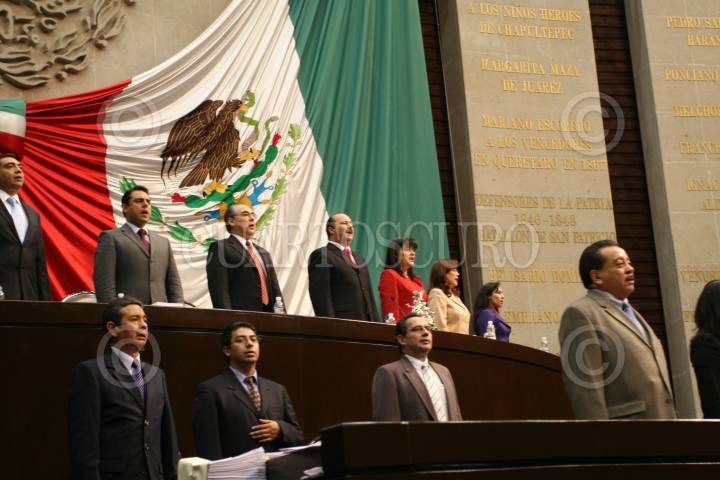 MÉXICO D.F., 25SEPTIEMBRE2008.-Se llevo acabo la sesión solemne en la Cámara de Diputados, donde se develaron con letras de oro en el muro de honor “A las Constituyentes de 1857” esto durante la sesión. En la imagen el diputado, José Luis Espinoza, vicepresidente de la mesa directiva. FOTO: GUILLERMO PEREA/CUARTOSCURO.COM