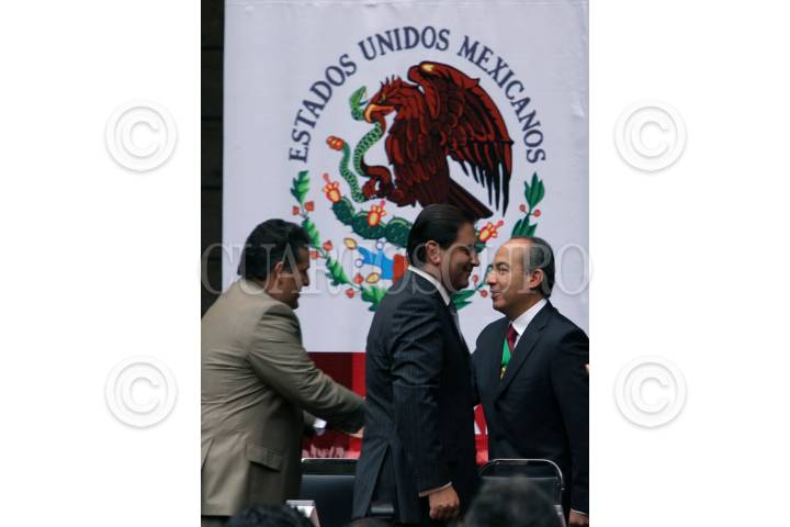 MÉXICO D.F. 05FEBRERO2007.- El gobernadro de Chiapas, Juan Sabines y Felipe Calderón Hinojosa, Presidente de la República, durante la ceremonia del CL Aniversario de la Constitución Política de 1857 y del XC Aniversario de la Constitución Política de 1917. FOTO: NELLY SALAS/CUARTOSCURO.COM