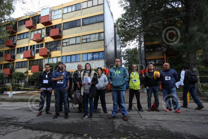 CIUDAD DE MÉXICO, 28SEPTIEMBRE2017.- Vecinos del Multifamiliar Tlalpan, en donde el edificio C1 se desplomó además de daños en otros más por el sismo del 19 de septiembre, en conferencia de prensa informaron que el gobierno de la ciudad no les informado sobre el proceso de reconstrucción, además de mencionar que en asamblea todos los vecinos decidieron plantear reconstruir toda la Unidad que consta de 10 edificios. FOTO: ADOLFO VLADIMIR /CUARTOSCURO.COM
