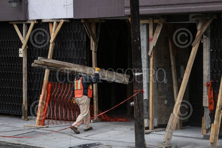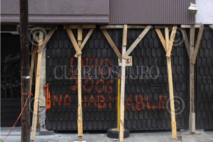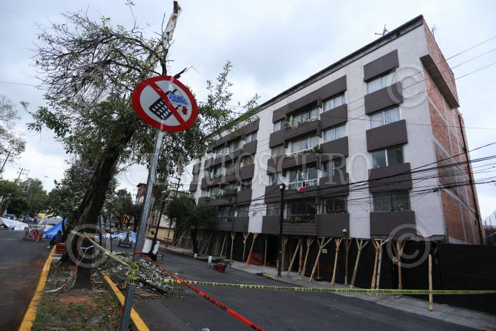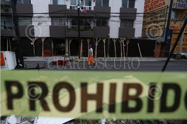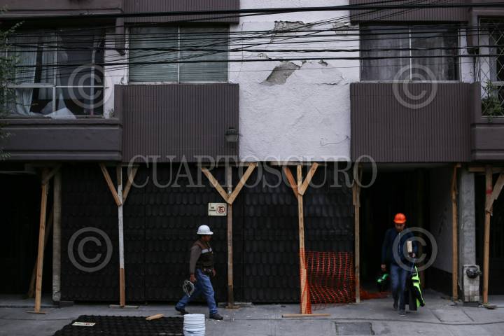 CIUDAD DE MÉXICO, 28SEPTIEMBRE2017.- Trabajos de apuntalamiento con un edificio departamental en la Av. Pacifico casi esquina con División del Norte, el cual se encuntra estructuralmente dañado después del sismo del 19 de septiembre de 2019. FOTO: ADOLFO VLADIMIR /CUARTOSCURO.COM