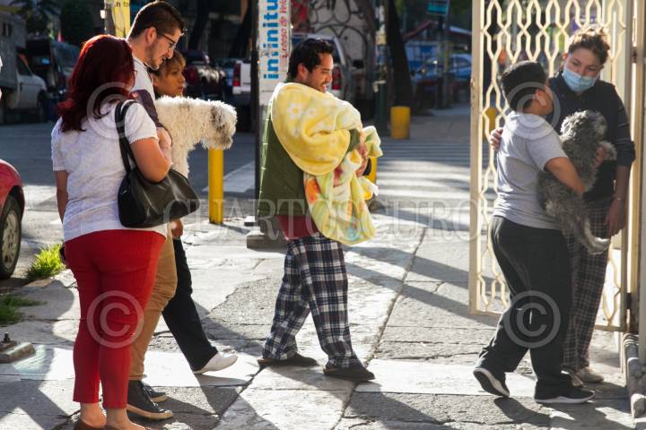 CIUDAD DE MÉXICO, 19JULIO2018.- Al cumplirse diez meses del sismo del 19 de septiembre de 2017 que causó considerables daños materiales y humanos hoy por la mañana se registró un sismo de 5.9 grados en la ciudad, con epicentro en Huajuapan de León, Oaxaca. Aunque el sismo fue leve las personas optaron por salir de sus domicilios. FOTO: MOISÉS PABLO /CUARTOSCURO.COM