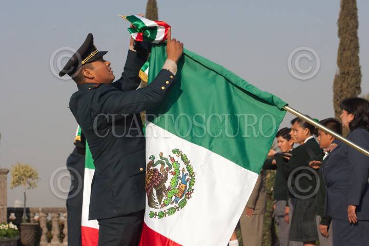 QUERÉTARO, QUERÉTARO, 24FEBRERO2011.- Aspectos de la conmemoración del 190 Aniversario de la bandera mexicana. Celebrado en la capital del estado donde participaron elementos del ejército mexicano, acompañados por el gobernador del estado José Calzada. FOTO: DEMIAN CHÁVEZ/CUARTOSCURO.COM