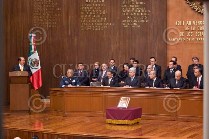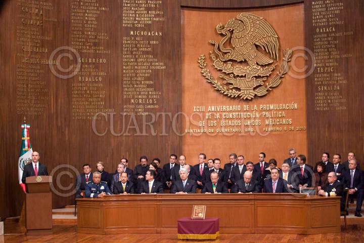 QUERÉTARO, QUERÉTARO, 05FEBRERO2010.- Aspectos de la celebración del Aniversario XCIII de la Constitución Mexicana, encabezado por el Presidente de la República Felipe Calderón, el gobernador del Estado José Calzada, secretarios de estado en el Teatro de la República. FOTO: DEMIAN CHÁVEZ/CUARTOSCURO.COM