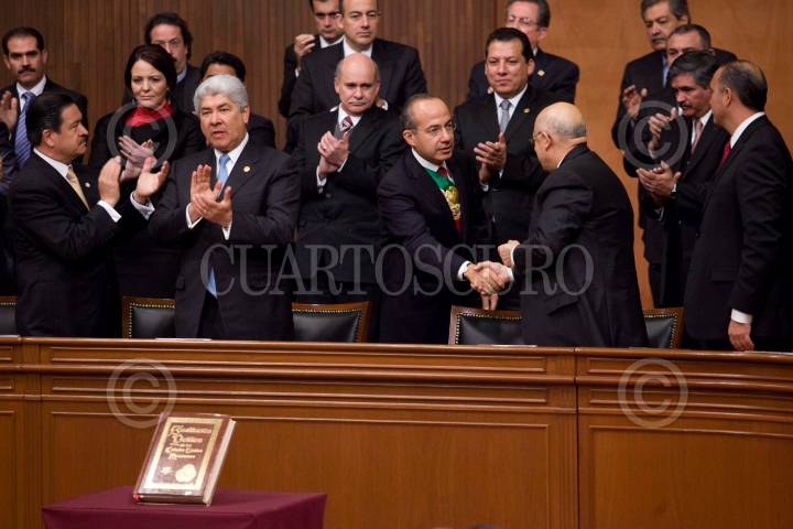 QUERÉTARO, QUERÉTARO, 05FEBRERO2010.- Ministro Guillermo I. Ortiz Mayagoitia, Presidente de la SCJN durante la celebración del Aniversario XCIII de la Constitución Mexicana, encabezado por el Presidente de la República Felipe Calderón, el gobernador del Estado José Calzada, secretarios de estado en el Teatro de la República. FOTO: DEMIAN CHÁVEZ/CUARTOSCURO.COM
