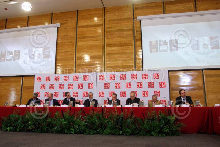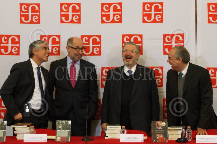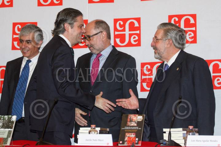 CIUDAD DE MÉXICO, 21FEBRERO2017.- Virgilio Andrade como titular del Banco del Ahorro Nacional y Servicios Financieros, y Aurelio Nuño, secretario de Educación, los ministros José Ramón Cossio, y Luis María Aguilar, José Carreño, titular del Fondo de Cultura Económica, y el historiador Enrique Florescano Mayet, durante el Conversatorio "17 para el 17, Constitución y constitucionalismo a debate", en el Fondo de Cultura Económica. FOTO: ISAAC ESQUIVEL /CUARTOSCURO.COM