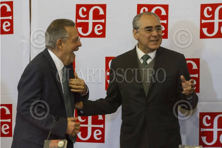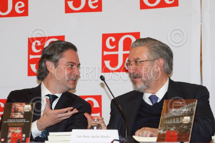 CIUDAD DE MÉXICO, 21FEBRERO2017.- José Carreño, titular del Fondo de Cultura Económica, y el ministro José Fernando Granco, durante el Conversatorio "17 para el 17, Constitución y constitucionalismo a debate", en el Fondo de Cultura Económica. FOTO: ISAAC ESQUIVEL /CUARTOSCURO.COM