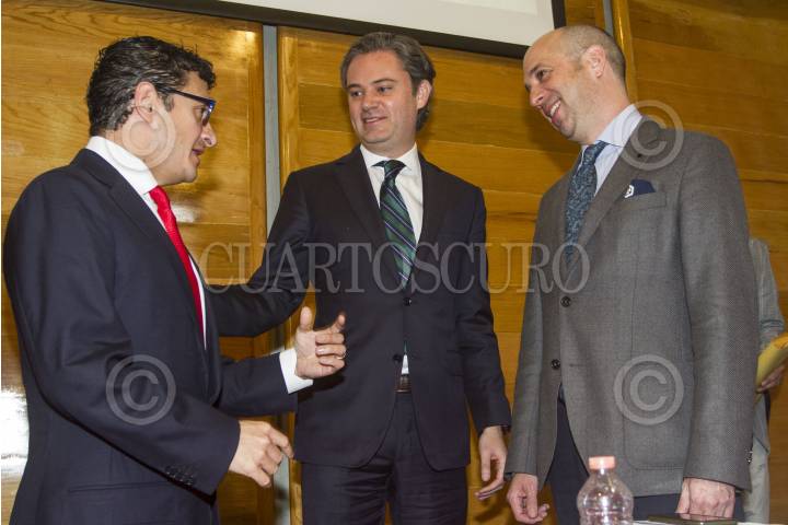 CIUDAD DE MÉXICO, 21FEBRERO2017.- Aurelio Nuño, secretario de Educación, y los ministros José Ramón Cossio, y Luis María Aguilar, durante el Conversatorio "17 para el 17, Constitución y constitucionalismo a debate", en el Fondo de Cultura Económica. FOTO: ISAAC ESQUIVEL /CUARTOSCURO.COM