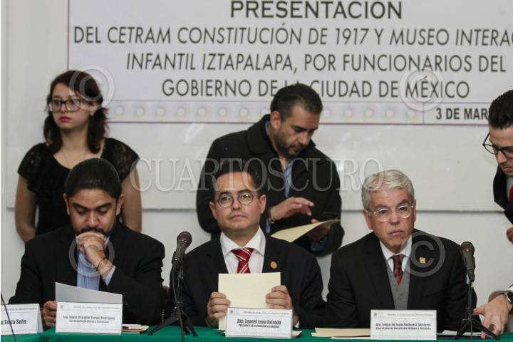 CIUDAD DE MÉXICO, 03MARZO2017.- Se realizó en la Asamblea Legislativa del Distrito Federal, la presentación del Cetram de Constitución 1917 y el Museo Interactivo Infantil de Iztapalapa, por el diputado Leonel Luna Estrada, Presidente de la Comisión de Gobierno de la ALDF, y funcionarios del gobierno de la Ciudad de México, Felipe de Jesús Gutiérrez Gutiérrez (Seduvi), Ing. Edgar Tungüí Rodríguez (Sobse), Edgar Amador Zamora (Finanzas), y diputados de las diferentes bancadas. FOTO: CARLOS MARURI /ALDF /CUARTOSCURO.COM