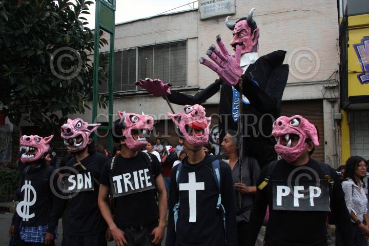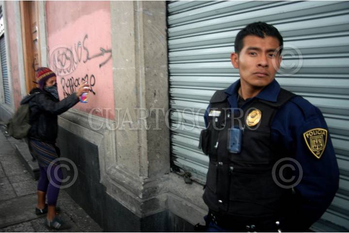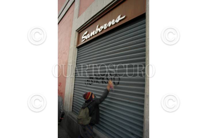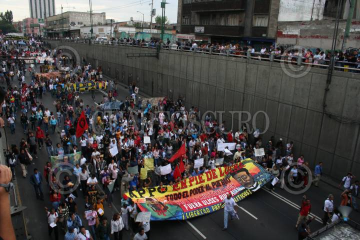 MÉXICO, D.F. 02OCTUBRE2006.- Algunas personas realizaron pintas, durante la marcha en que cientos de personas, entre ellos el Comité 68, simpatizantes de la APPO, habitantes de Atenco, estudiantes de la UNAM, UAM y Politécnico, entre otras organizaciones, conmemoraron la Matanza de Tlatelolco el 2 de cotubre de 1968. FOTO: GUILLERMO PEREA/CUARTOSCURO.COM